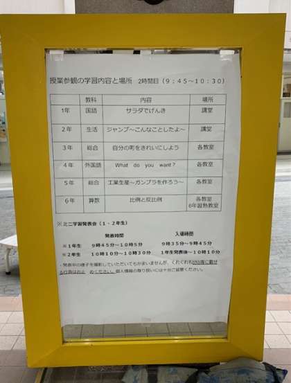 今日は土曜授業で、1年生、2年生の学習発表会と3年生から6年生の学習参観を行いました。