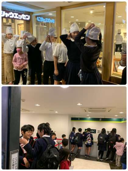 今日は6年生が卒業遠足でキッザニア甲子園に来ています。さっそく職業体験が始まりました。