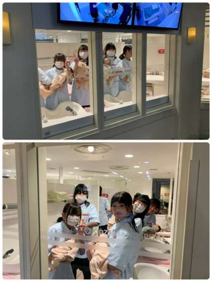 ナース体験で、赤ちゃんのお世話のお仕事をしています。
