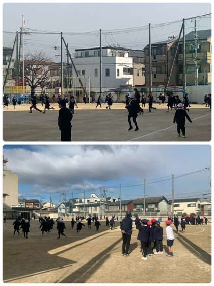 今日は、気温下がってとても寒いですが、低学年の子どもたちは、おにごっこをして元気に身体を動かしています。