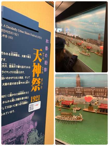 近代の大阪の暮らしの展示を見ました。今も続いている伝統行事の模型や昔の道具などがありました。