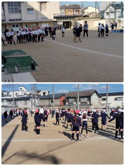 今日は高学年のかけ足大会をしています。これまで体育などで練習してきた成果を発揮しています。