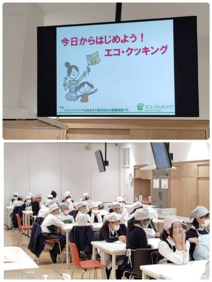 環境にやさしい調理について考えることをめあてに、調理実習をしました。