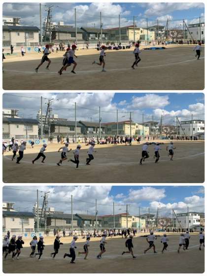 2年生に続いて、3年生のかけ足大会を行いました。3年生も自分の目標に向かって、真剣に取り組んでいました。