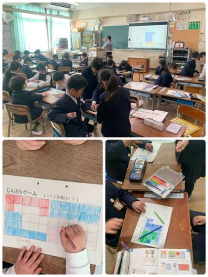「どちらがひろい?」という学習内容で、陣取りゲームをしています。