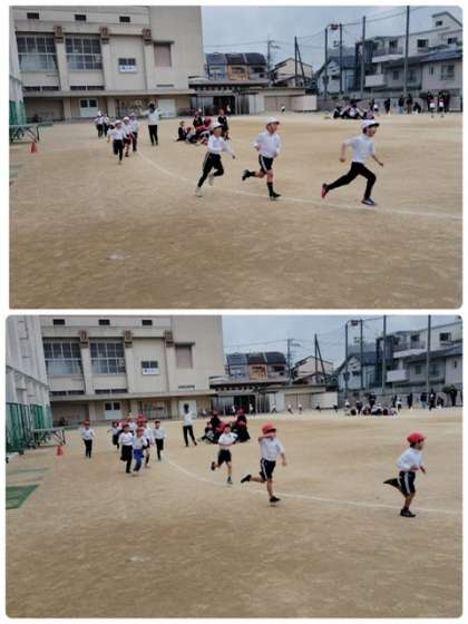 今日は、延期になっていた1年生のかけ足大会を行いました。たくさんのおうちの方に見守っていただき、とても意欲的に取り組んでいました。練習の成果を精一杯発揮できたようです。