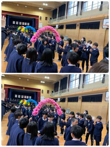 6年生からも歌と演奏の披露がありました。1年生から5年生に手作りの雑巾のプレゼントがありました。