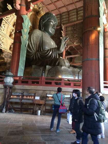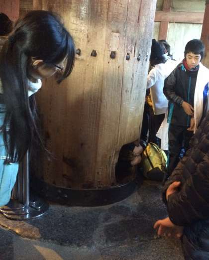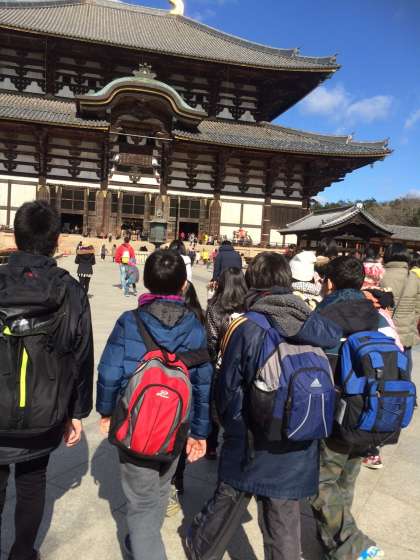 大仏殿の見学です。社会科で学習しましたね。日本が世界に誇る遺産の一つということもあり、外国の方々もたくさん見学に来ているとのことでした。
