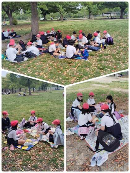 広場に移動して、楽しみにしていたお弁当の時間になりました。