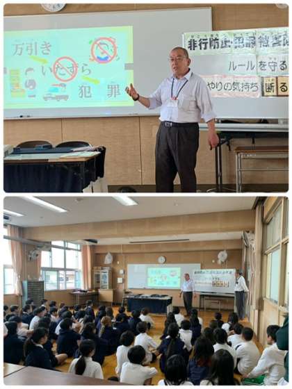今日は警察官のOBの方をゲストティチャーとしてお迎えして、5年生を対象に非行防止教室を行いました。