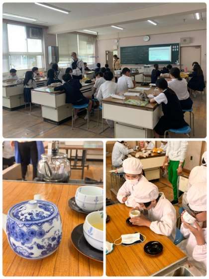 5年生の家庭科の授業の様子です。今日はお茶を入れて飲む実習をしていました。お湯を沸かし、日本茶を急須で入れて飲むという、ゆったりとした時間が流れました。