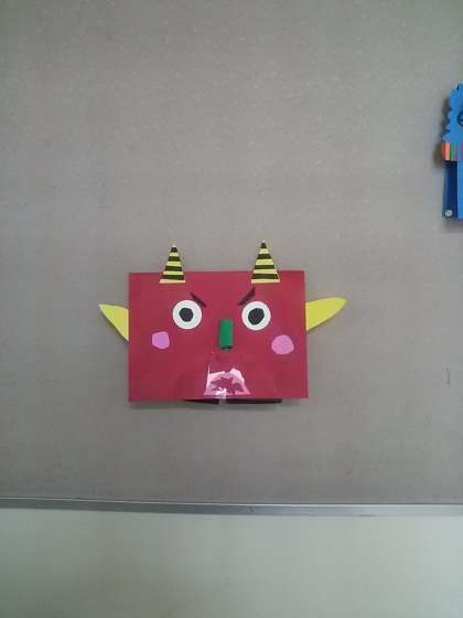 2月3日は節分!鬼の面を作りました。怖い鬼、かわいい鬼、カラフルな鬼等いろんな鬼がいてますね。