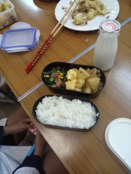 調理終了。お弁当が出来上がりました。卵焼きもとてもきれいに焼きあがりました。(画像のピントがずれていて申し訳ありません)