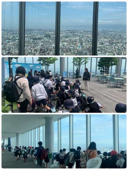 今日は3年生が社会見学であべのハルカスに来ています。地上60階の景色は鳥になったようです。