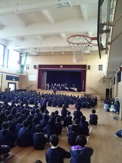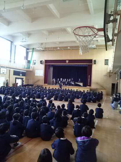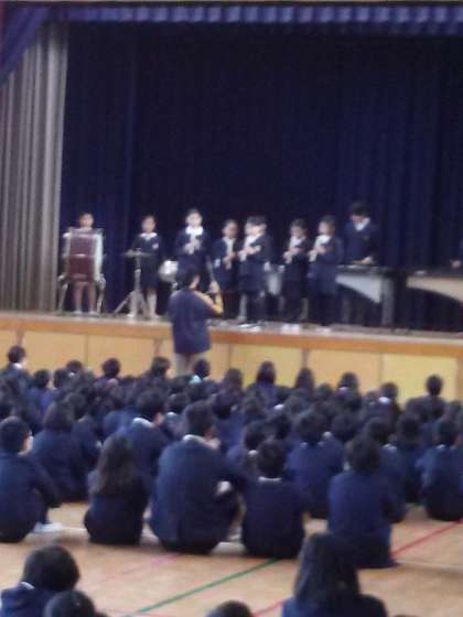 今日はクラブや委員会の発表会。まずは、音楽クラブによる合奏 曲は「tomorrow]