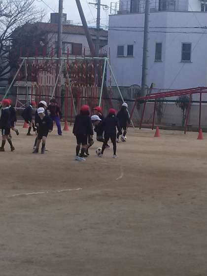 1組も同じくサッカー、1組はドリブルとシュートの練習です。