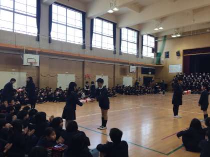 最後に6年生から在校生へプレゼント