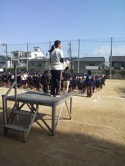 今年度はじめての朝会がありました。今年度より並ぶ場所が今までと少し変わりましたのではじめに担当の先生からお話がありました。