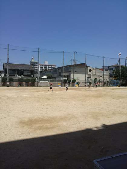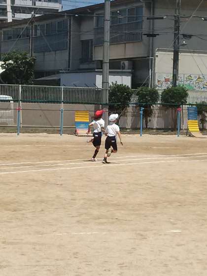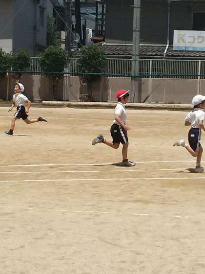 50メートルのタイムを計っています。去年より、ずいぶんとフォームが力強くなっています!(^^)! どれくらいタイムが縮んだかな?