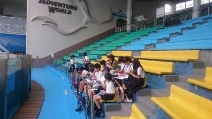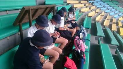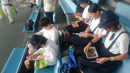 昼食タイム。全てのグループが時間通りに集合できました。さすが6年生ですね。