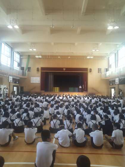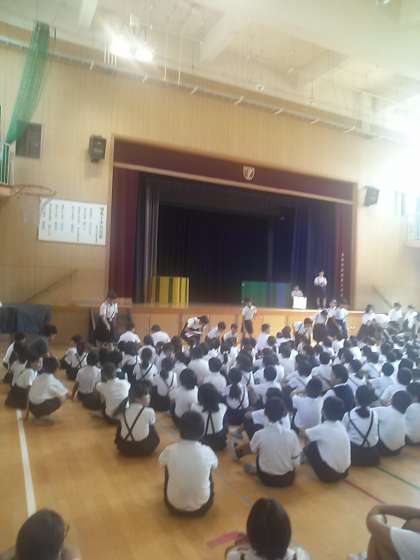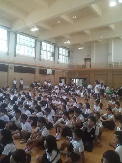 舞台の端から品物を投げて物の名前をあてるゲームをしました