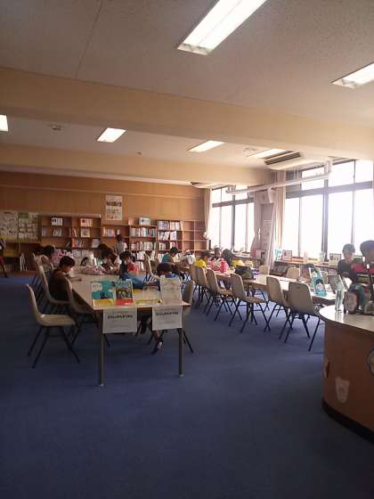 図書館ボランティア「ひまわり」さんのご協力で、夏休みの図書室開放が行われています。27日(水)までですので、みなさんどしどし図書室に来て下さいね!(^^)!