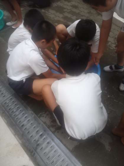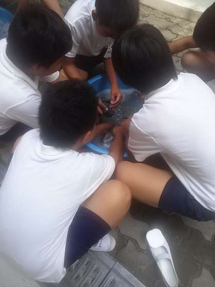 洗濯実習をしています。自分の靴下を手洗いしました。