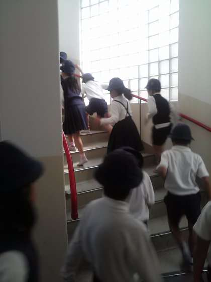 地震と津波を想定して屋上に避難しました
