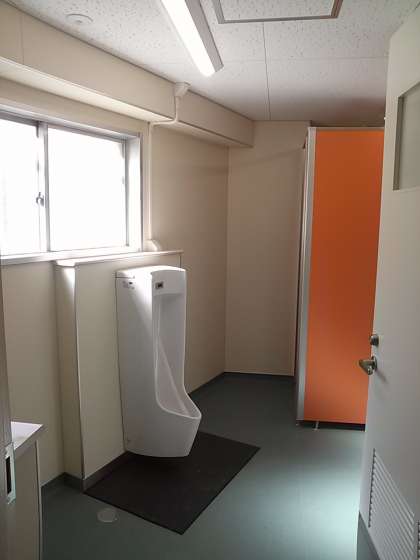 地域の皆様にご不便をおかけしておりましたが、講堂棟のトイレの改修工事が終了しました。1階は男子、2階は女子、3階は男女兼用です(3階は普段は使用できません)。照明は人感センサーにより自動的にON OFFされます。