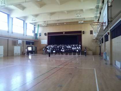 5年生は今月15日(火)に音楽交流会に参加します。曲目は「世界にひとつだけの花」と「かわらないもの」の2曲です。