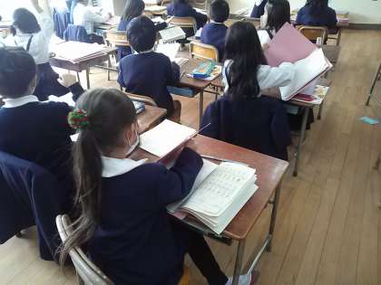 たし算の宿題プリントの答え合わせをしていました。全問正解の人もたくさん!(^^)!