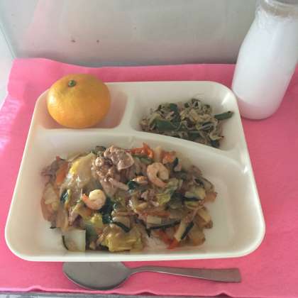 今日は、中華丼、もやしの中華あえ、みかんでした。