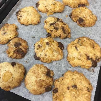 コーンフレークとチョコチップを加え、カリッとした食感になっています。