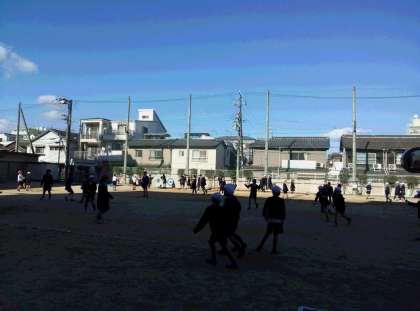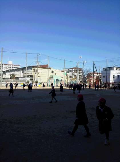 今日の大阪は今シーズン一番の冷え込みだそうです。でも、昼休み運動場に出てみると、昨日よりたくさんの子ども達が外で遊んでいました!(^^)!