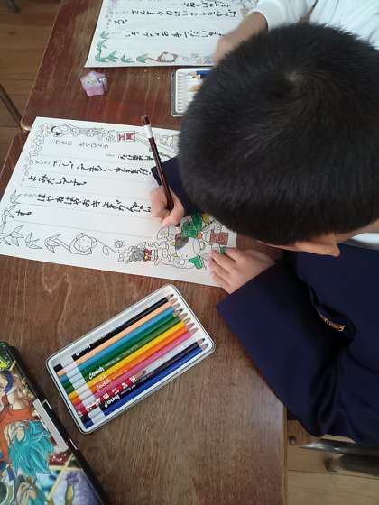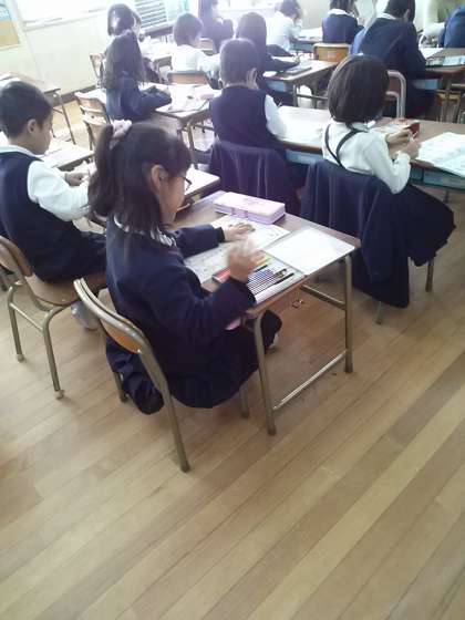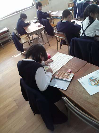 今年1年の目標を書いていました。音読を頑張る・計算が早くなるように頑張る・早寝早起きをする・好き嫌いをなくす等々みんな真剣に今年の目標を考えていました!(^^)!