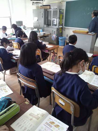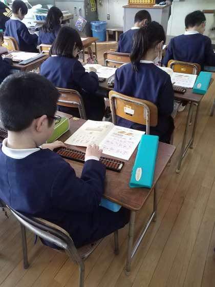 そろばん教室、今日は3年2組でやっています。