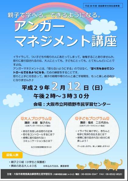 親子で学べる。できるようになる。「アンガーマネジメント講座」を開催します!!