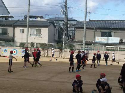 3組は持久走、2組はトラックの中で縄跳びを使ってしっぽ取りをしていました。終わるころには、みんな頬っぺたが真っ赤になっていました!(^^)!