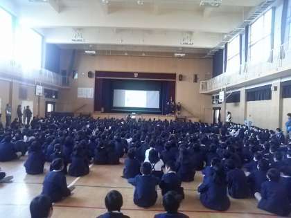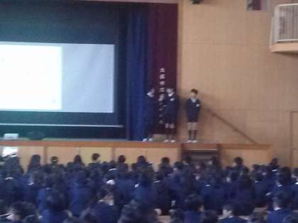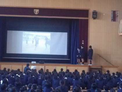 運動委員会はビデオを使っての発表。正しい道具の使い方などをみんなに知らせてくれました。