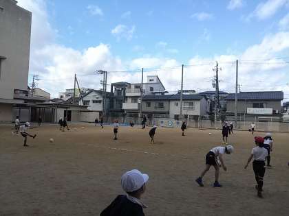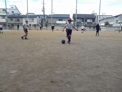3人組になってパスの練習をしてました。「かっこよく蹴っているところを」と注文をつけてから写真を撮りました。