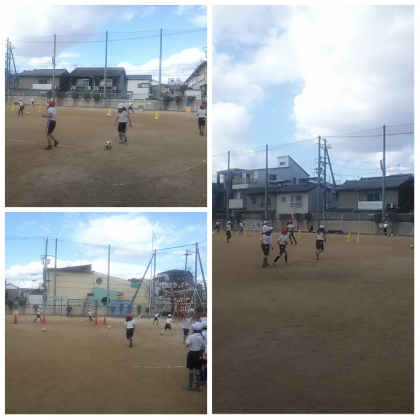 ゴールサッカーの練習。コーンの間を狙ってシュート。私も1度チャレンジしましたが、失敗しました・・・