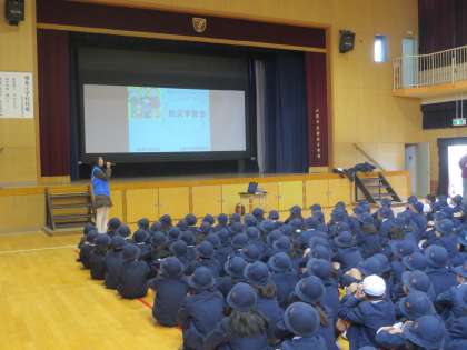 地域合同避難訓練をしました。津波を想定して、屋上まで避難しました。子どもたちはみな、静かに並んで移動することができました。校長先生からは「災害はいつやってくるかわかりません。おうちの人と、どのように避難をするか、しっかり話し合っておきましょう。」とお話がありました。