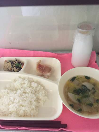 今日は、ご飯、赤魚のレモンじょうゆかけ、うすくず汁、高野豆腐のいり煮でした。