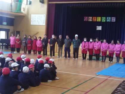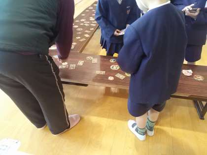 本日今年度最後の学習参観が行われました。1年生は講堂にて姫島地域女性部をはじめたくさんの地域の皆様にご来校頂き、昔遊びを教えていただきました。