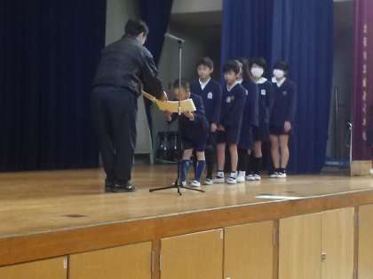 今朝はたくさんの皆さんが表彰状をもらいました。絵画展、作文、バレー大会等みんな様々なところで大活躍でした。