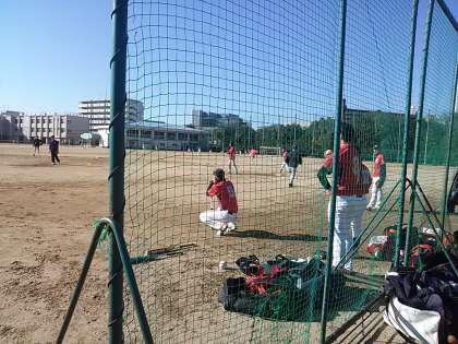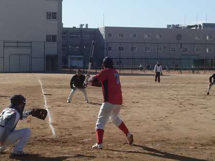 西淀中学校グラウンドではソフトボールチームがOBチームと対戦中!