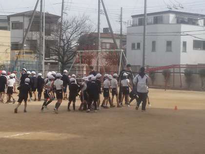 ラグビーチーム「NTTドコモレッドハリケーンズ」の選手の皆さんにお越しいただき、ラグビーのご指導を頂きました。
