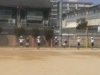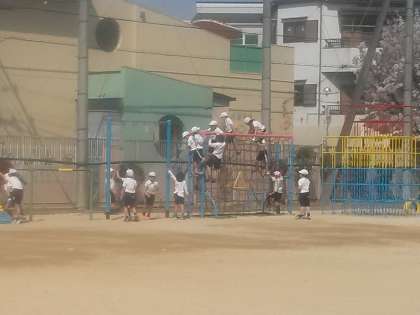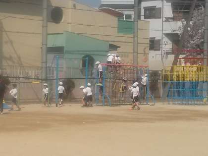 春休み中に管理作業員が運動場の遊具を綺麗に塗ってくれました。みんな楽しく活動に取組んでいました。