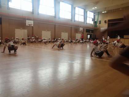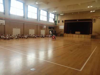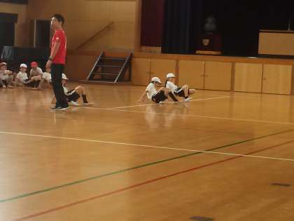 講堂で合同体育をしていました。色々な走り方をしています。