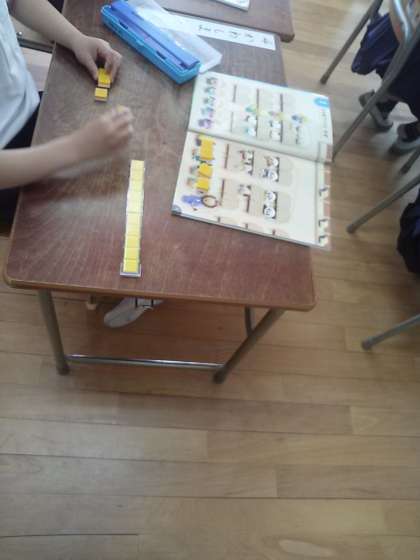 ブロックを使って算数の勉強。みんなしっかりと先生のお話を聞いて学習に取組んでいました!(^^)!